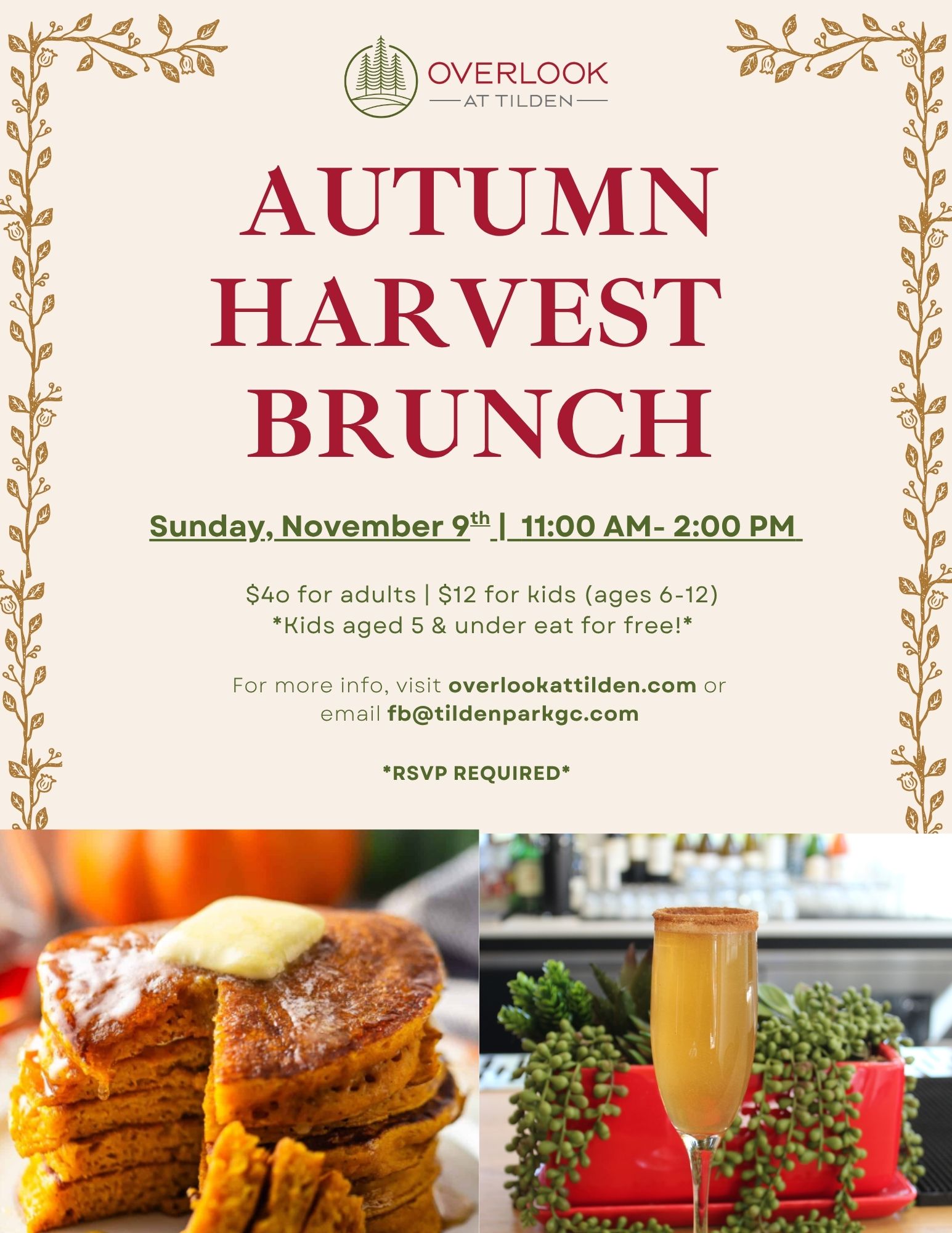 RSVP required! Sign up here: https://tildenparkgc.com/store/Autumn-Harvest-Brunch-p736190709